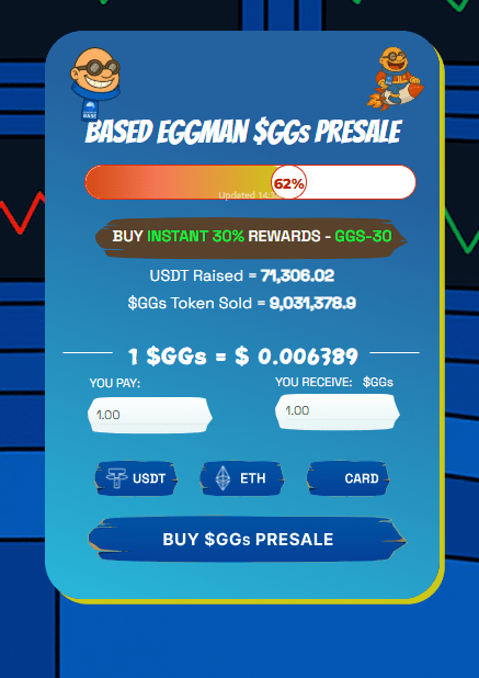 Based Eggman ($GGs) has emerged as the hottest presale of 2025, offering investors the chance to capture the kind of early-stage gains. This article explores what Based Eggman is, how its tokenomics are structured, the roadmap behind the project, details of its presale, investment potential in 2025, and how investors can participate, thus offering a useful insight for all interested investors.