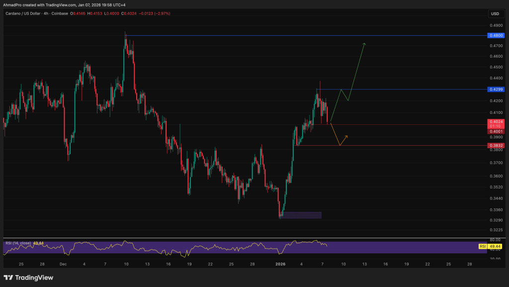 Cardano started the year strong and is up 20% over the last 7 days. At the time of writing, it has reclaimed the $0.40 psychological level, although likely only temporarily.