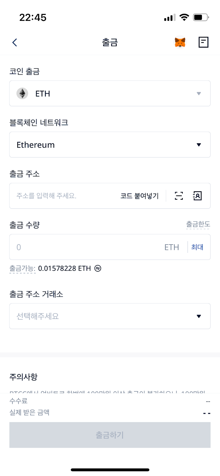 출금 주소: 개인지갑 주소를 입력해주세요.