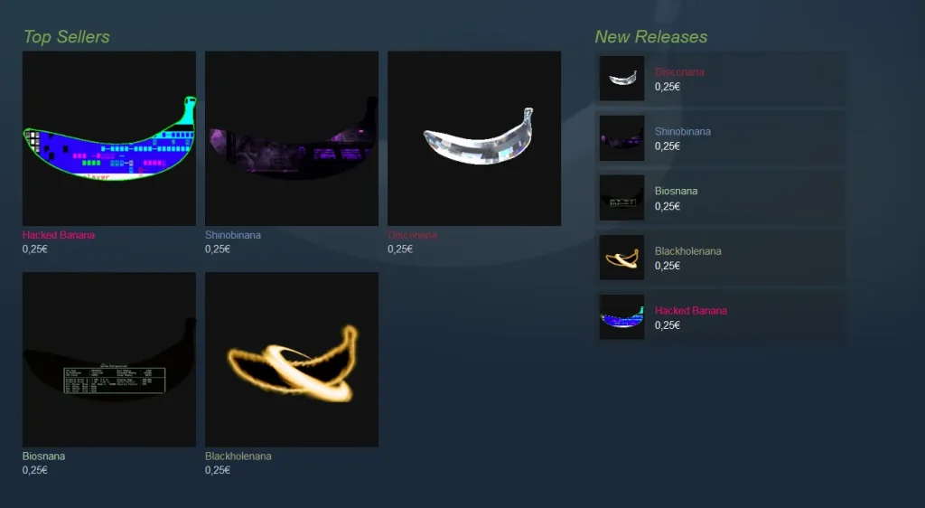 看到最後,如果您想加入這場盛宴並碰碰運氣獲得稀有掉落物,只需在 Steam 中搜尋“banana”,它將是您看到的第一個連結。